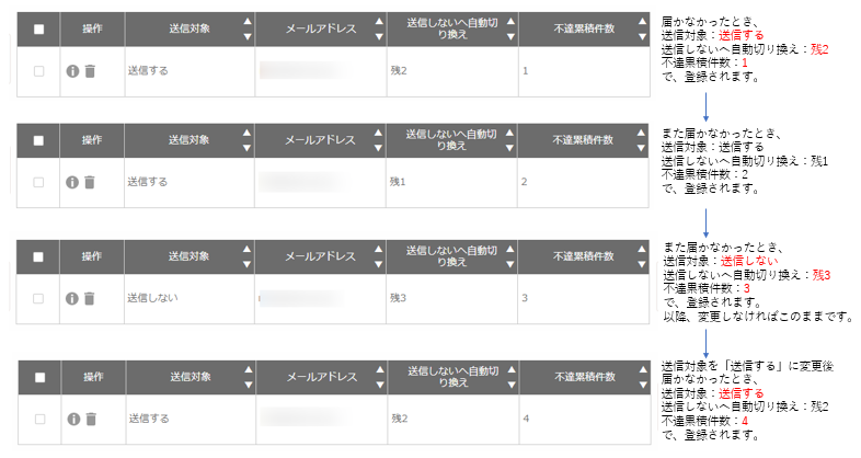 不達メールの累積回数です。