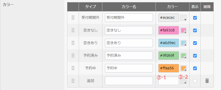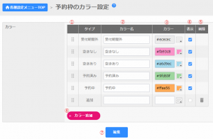※予約枠に設定しているカラーは削除できません。