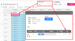 予約一覧(A-③):ポップアップに表示されているデータに絞った予約一覧が確認できます。
