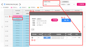 予約一覧(B-③):ポップアップに表示されているデータに絞った予約一覧が確認できます。