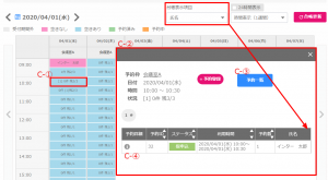 予約一覧(C-③):ポップアップに表示されているデータに絞った予約一覧が確認できます。