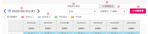 基本設定の「予約台帳初期表示」で設定した表示タイプが初めに表示されますが、ここで他の表示タイプを指定し閲覧できます。