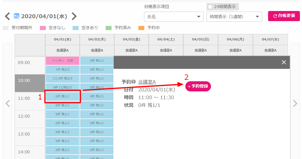 1.予約したい枠をクリックし、