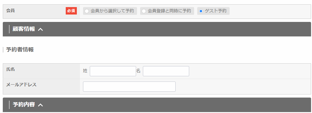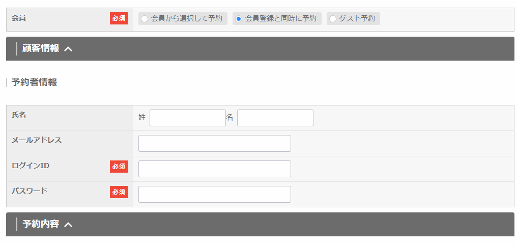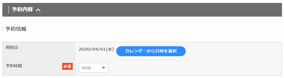 予約枠設定で設定した予約内容の表示パターンによって、表示される項目が異なります。