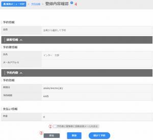 登録:予約を登録します。