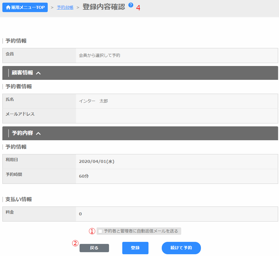 予約詳細:登録した予約の詳細に移動します。