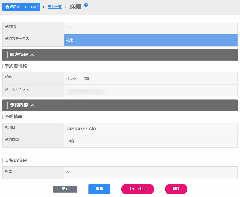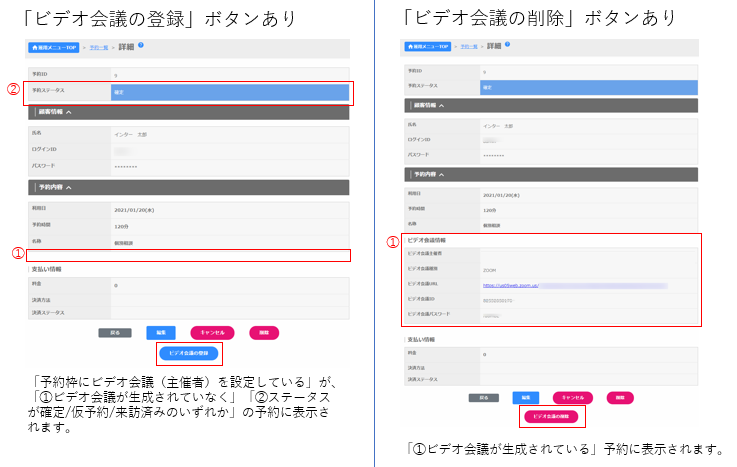ライト版や予約枠設定の主催者で「連携しない」を設定している予約枠の予約には、表示されません。