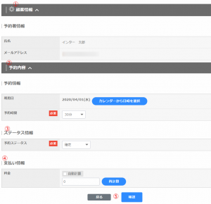 表示される項目は、予約内容の表示パターン設定で②~⑤に設定している項目です。