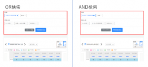 OR検索:グループ内で、選択したキーワードのうちどれか1つでも該当していれば検索結果に表示されます。