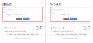 AND検索:選択したキーワードのうち、全て該当していれば検索結果に表示されます。