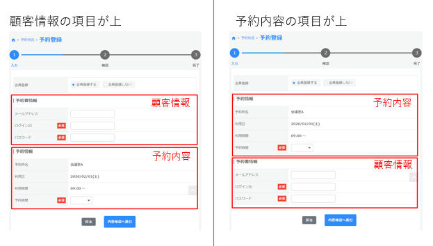 会員登録と同時に予約やゲスト予約のときに、どちらを上に持ってくるか設定します。