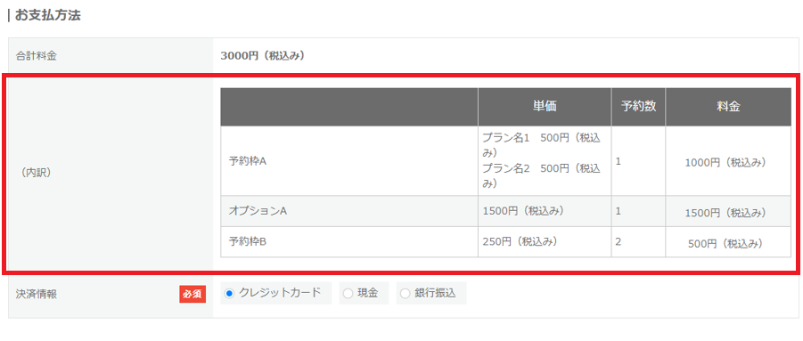 利用する:予約登録・編集時に支払料金の内訳が表示されます。(確認画面で表示)