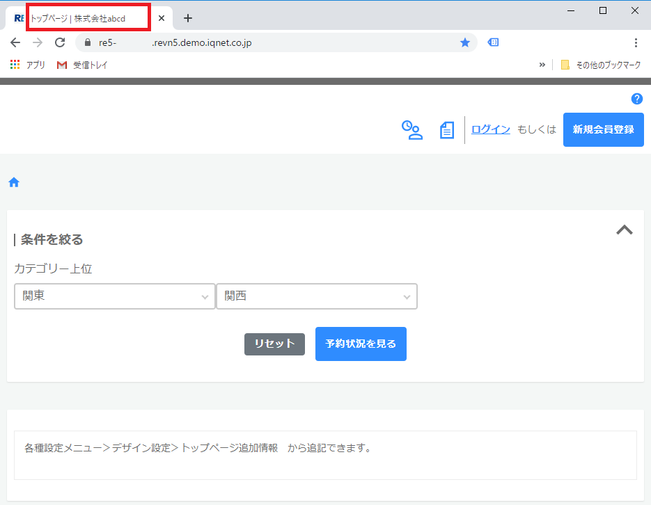 例)予約サイト名を「株式会社abcd」と設定した場合