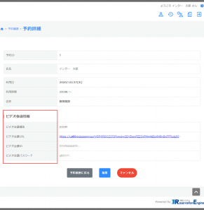予約詳細でビデオ会議のURL等を確認できます。