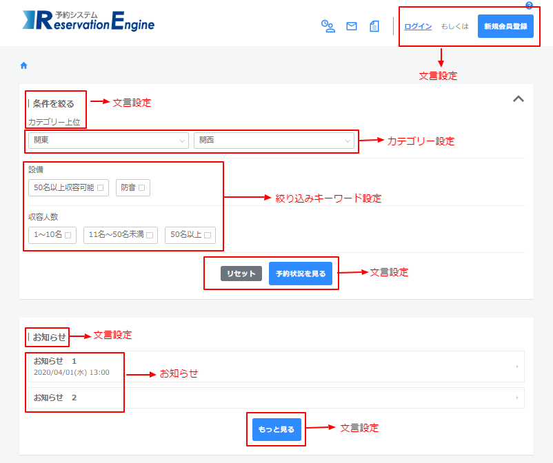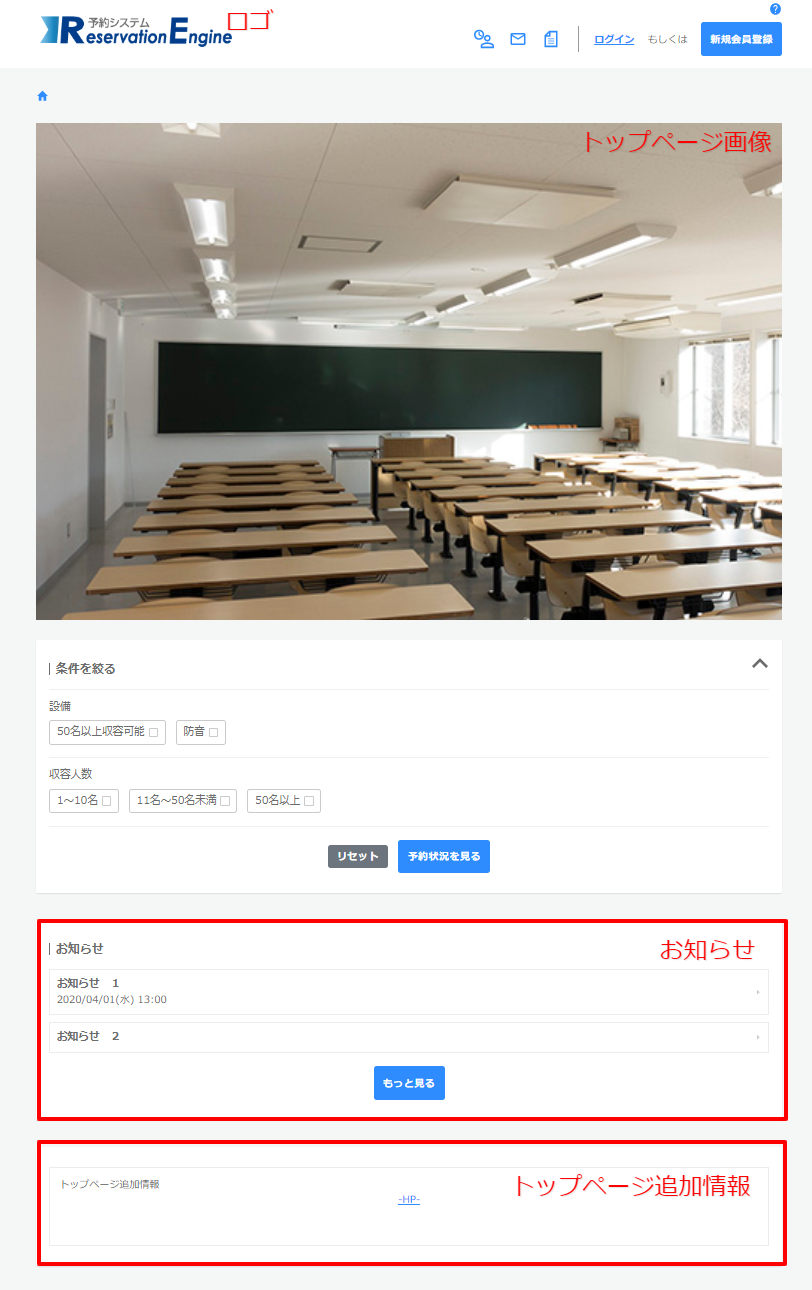 予約サイトのトップページに追記したい⇒トップページ追加情報 お知らせ