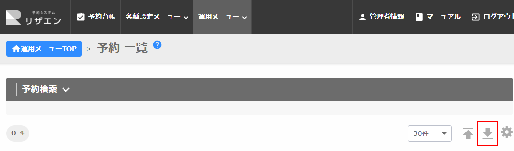 予約一覧の予約データダウンロードからダウンロードできます。