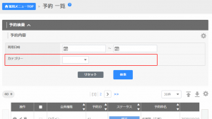 予約検索の項目を入力して絞り込みができます。