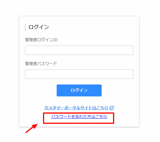 システム提供時に設定したマスター管理者のみログイン画面の「パスワードを忘れた方はこちら」からリセットできます。