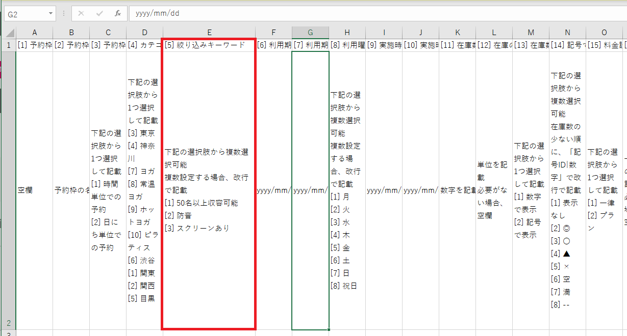 絞り込みキーワードID:予約枠設定の予約枠アップロードの「フォーマット」