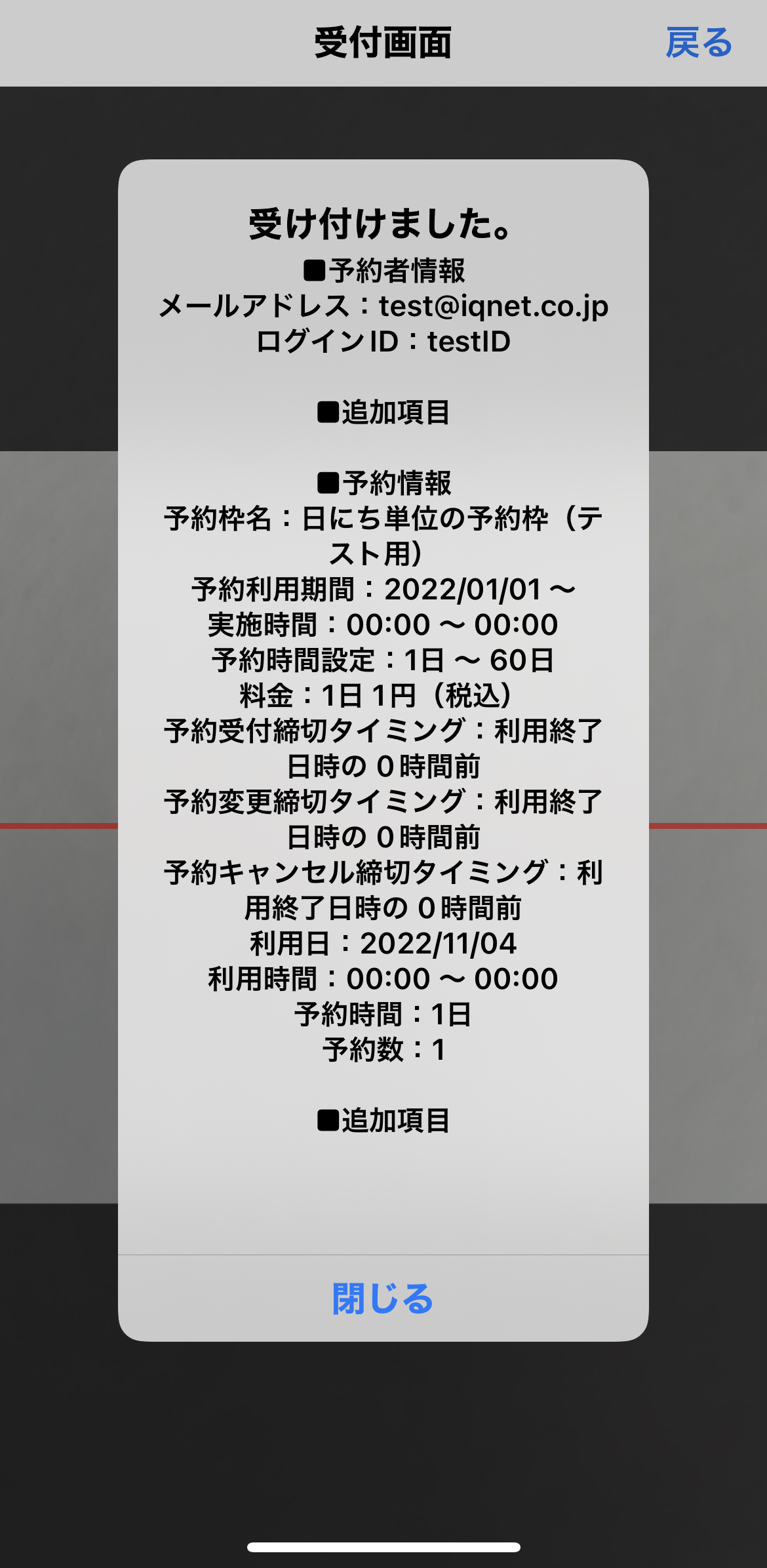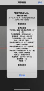 受付後の確認画面が表示から10秒後に自動で閉じます。