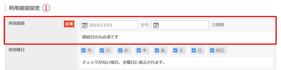 2.予約枠設定の利用曜日で「祝日」のチェックしない。