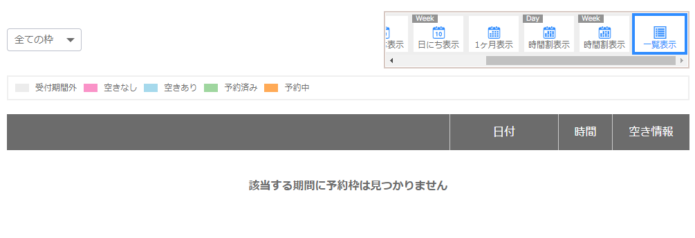 予約枠の開始日(または過去に開始した予約枠は本日)から30日間予約できる枠がない場合、表示されません。
