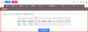 検索項目設定(①)をクリック後に表示される②から表示したい項目をチェックします。