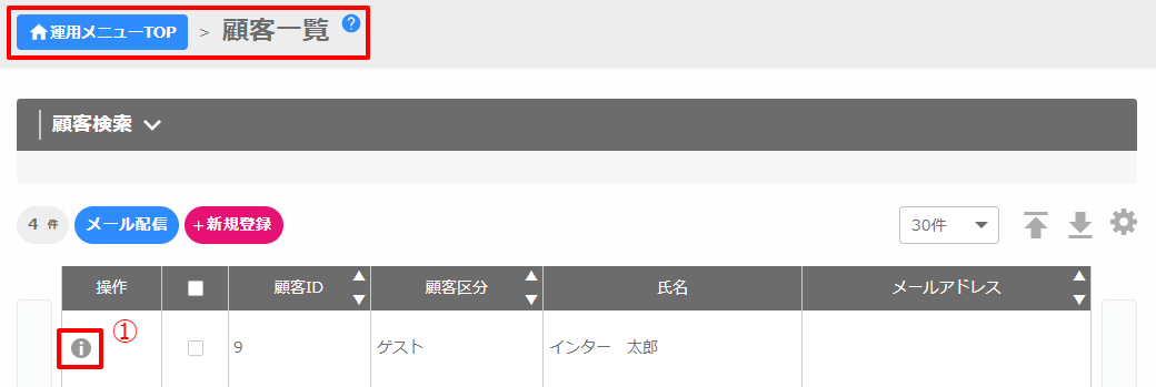 運用メニュー「顧客一覧」からできます。