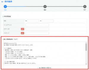 「個人情報規約:会員登録時」に掲載したい文章を記載します。